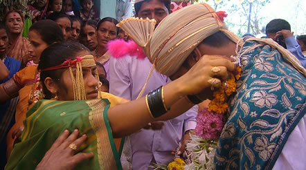acceptance. Mangalsutra is tied around the bride's neck by the groom
